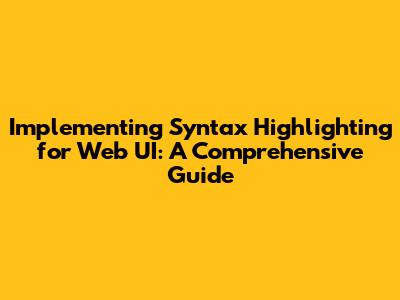 Implementing Syntax Highlighting For Web UI: A Comprehensive Guide