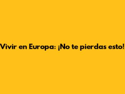 Vivir En Europa: ¡No Te Pierdas Esto!